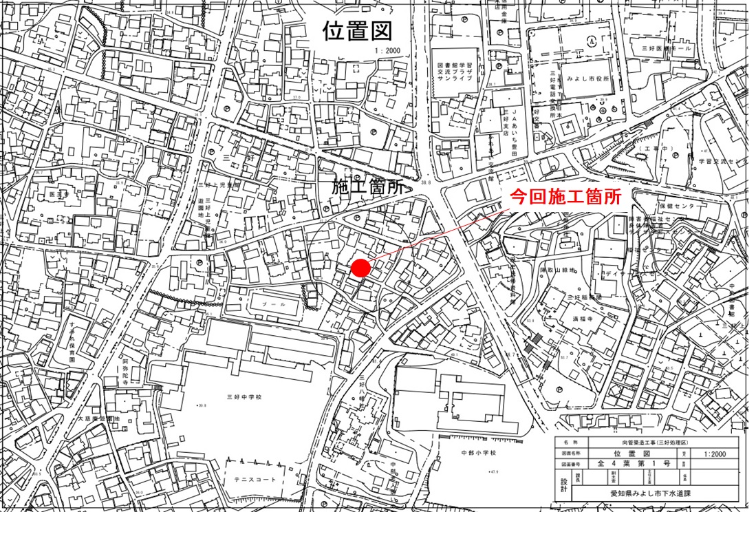 このたび、みよし市三好町地内におきまして、下記のとおり下水道管の布設、人孔、汚水桝設置工事を行います。